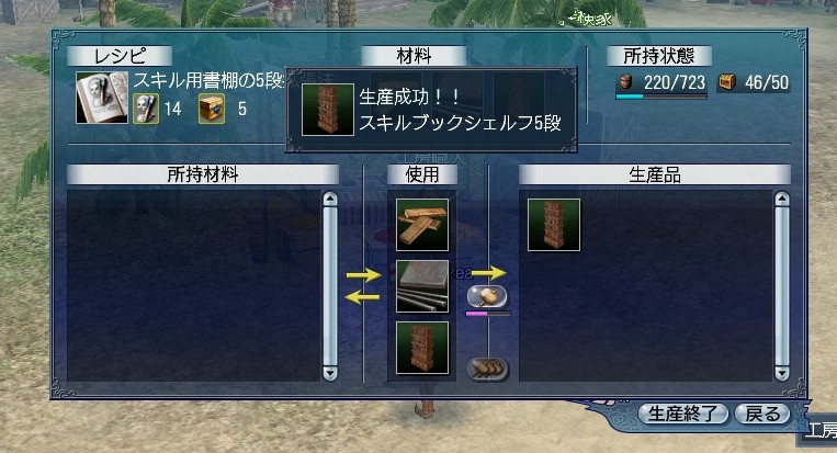 さくっと言ってますが、作成に必要なスキルは工芸R14と保管R5。自力で作れるようになるとは、思えば遠くまできたもんだーって感じです。(?