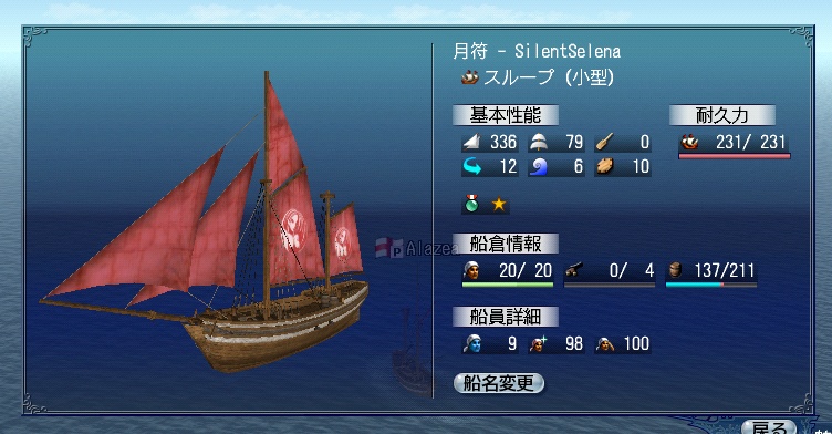 と言っても作成費用はほとんど掛からず、造船費用がほとんどでしょうか。部品を全て自作できたのがかなり大きいですね。増減は速度を落とすと意味がないことと、減量すると物資が入らないので±0にしてみました。