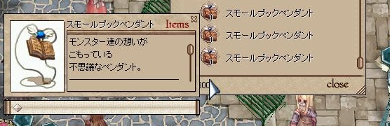 これに釣られました。スロット1のアクセサリ。不死・悪魔種族からダメージ-2%、人間・魚介・動物種族からダメージ-1%。レベル・職制限なしの重量10。はっきり言って性能的には優れすぎていると言っても過言ではないでしょう、恐らく。