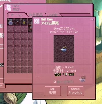 ところで全然関係ないというか言いそびれてたんだけど、マビノギの露店は売り上げの1%が手数料として差し引かれるので、1Gで物を売っても手元には何も残らないのは仕様なの。