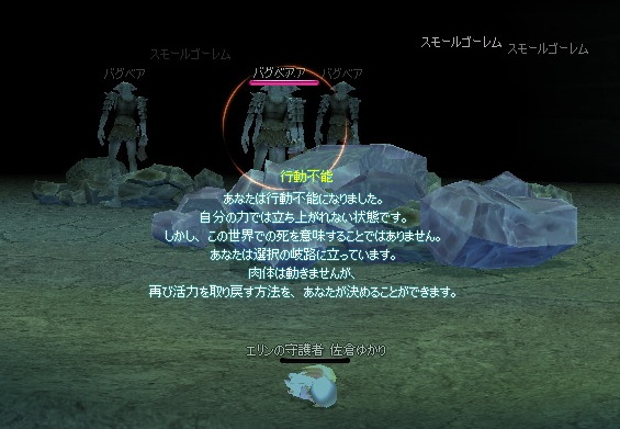 基本的にバグベア*4とゴーレム1体、そしてゴーレムがスモールゴーレム3匹を召還するようで。そのど真ん中に初期配置されたので一瞬でこうなりました。