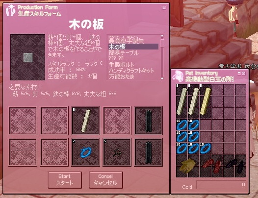 が。実はこれ以上ハンディクラフトを上げる為には、木板(丈夫な紐・鉄の棒・薪・釘)を作成する必要があるわけで。薪と釘は自力で調達し、丈夫な紐は自分で作れるので問題ないのですが、問題は鉄の棒。鍛冶をしていない私には、ランク9の鉄の棒というのは自分では作れません。